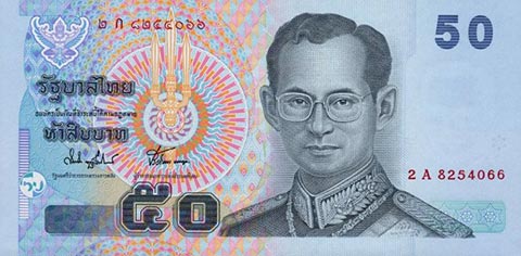 Тайладнский бат. Купюра номиналом в 50 THB, аверс.
