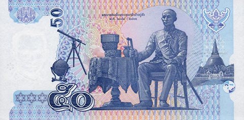 Тайладнский бат. Купюра номиналом в 50 THB, реверс.