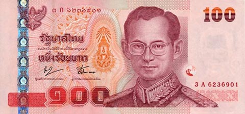 Тайладнский бат. Купюра номиналом в 100 THB, аверс.