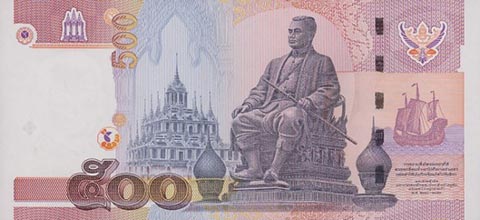 Тайладнский бат. Купюра номиналом в 500 THB, реверс.