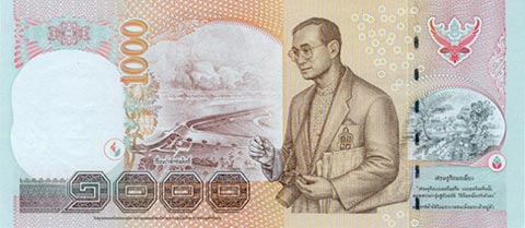 Тайладнский бат. Купюра номиналом в 1000 THB, реверс.