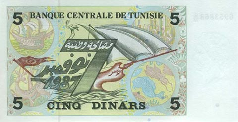 Тунисский динар. Купюра номиналом в 5 TND, реверс.