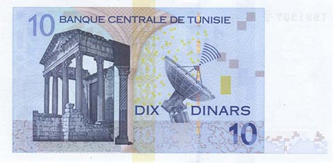 Тунисский динар. Купюра номиналом в 10 TND, реверс.