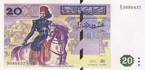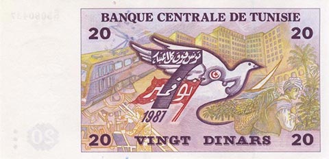 Тунисский динар. Купюра номиналом в 20 TND, реверс.