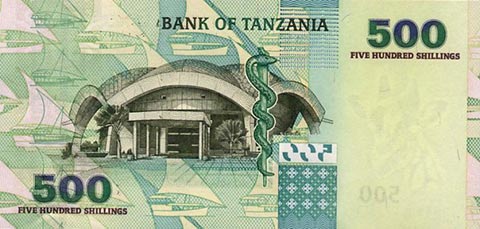 Танзанийский шиллинг. Купюра номиналом в 500 TZS, реверс.