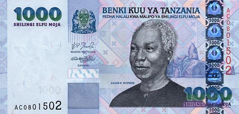 Танзанийский шиллинг. Купюра номиналом в 1000 TZS, аверс.