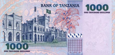 Танзанийский шиллинг. Купюра номиналом в 1000 TZS, реверс.