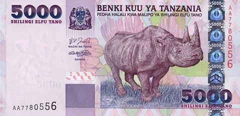 Танзанийский шиллинг. Купюра номиналом в 5000 TZS, аверс.