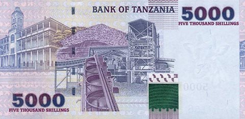 Танзанийский шиллинг. Купюра номиналом в 5000 TZS, реверс.