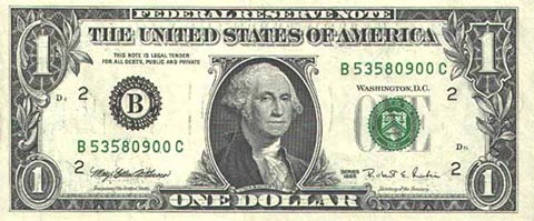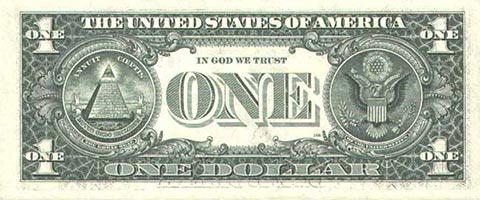 Доллар США. Купюра номиналом в 1 USD, реверс.