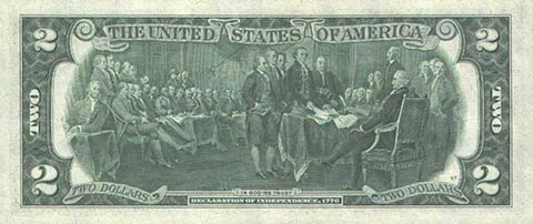 Доллар США. Купюра номиналом в 2 USD, реверс.
