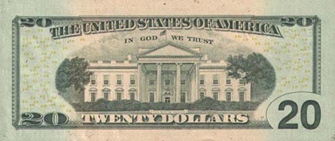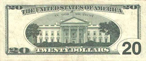 Доллар США. Купюра номиналом в 20 USD, реверс.