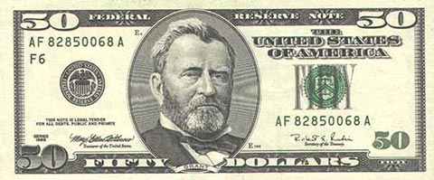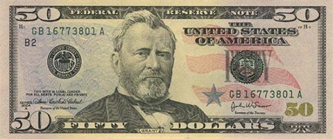 Доллар США. Купюра номиналом в 50 USD, аверс.