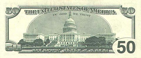 Доллар США. Купюра номиналом в 50 USD, реверс.