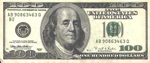 Доллар США. Купюра номиналом в 100 USD, аверс.