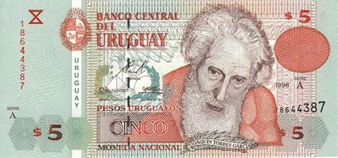 Уругвайские песо. Купюра номиналом в 5 UYU, аверс.