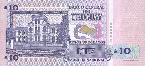 Уругвайские песо. Купюра номиналом в 10 UYU, реверс.