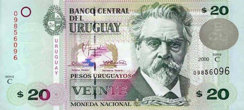 Уругвайские песо. Купюра номиналом в 20 UYU, аверс.