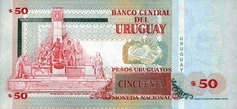 Уругвайские песо. Купюра номиналом в 50 UYU, реверс.