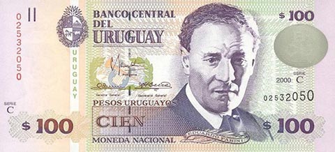 Уругвайские песо. Купюра номиналом в 100 UYU, аверс.