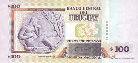 Уругвайские песо. Купюра номиналом в 100 UYU, реверс.