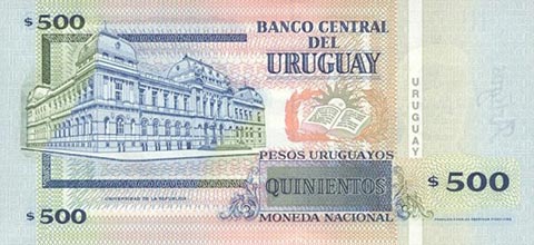 Уругвайские песо. Купюра номиналом в 500 UYU, реверс.