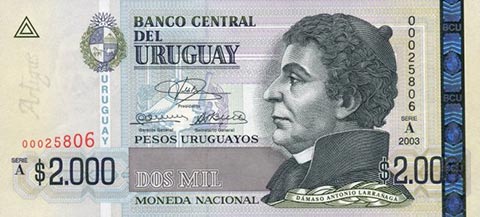 Уругвайские песо. Купюра номиналом в 2000 UYU, аверс.
