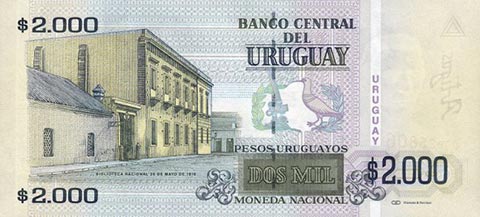 Уругвайские песо. Купюра номиналом в 2000 UYU, реверс.