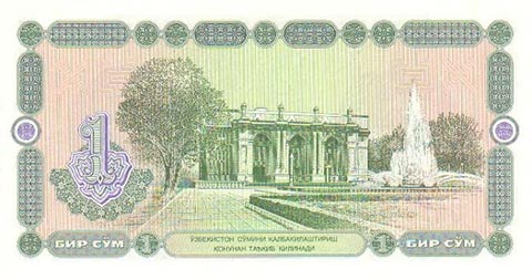 Узбекский сум. Купюра номиналом в 1 UZS, реверс.
