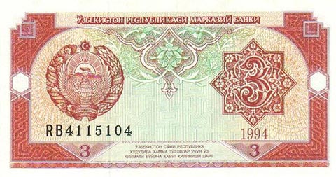 Узбекский сум. Купюра номиналом в 3 UZS, аверс.