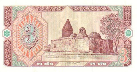 Узбекский сум. Купюра номиналом в 3 UZS, реверс.