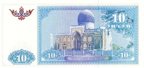 Узбекский сум. Купюра номиналом в 10 UZS, реверс.