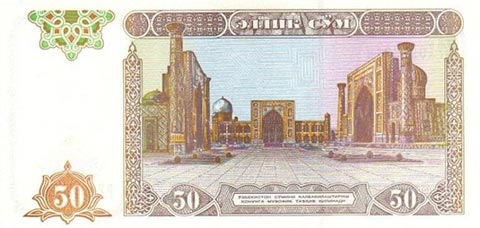 Узбекский сум. Купюра номиналом в 50 UZS, реверс.