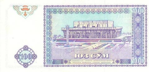 Узбекский сум. Купюра номиналом в 100 UZS, реверс.