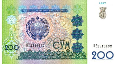 Узбекский сум. Купюра номиналом в 200 UZS, аверс.