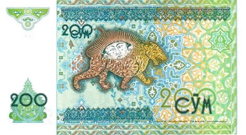 Узбекский сум. Купюра номиналом в 200 UZS, реверс.
