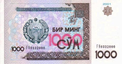 Узбекский сум. Купюра номиналом в 1000 UZS, аверс.