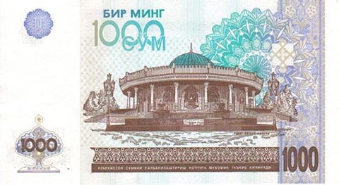 Узбекский сум. Купюра номиналом в 1000 UZS, реверс.
