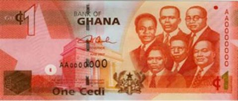 Ганский седи. Купюра номиналом в 1 GHS, реверс.
