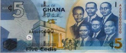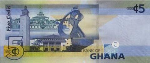 Ганский седи. Купюра номиналом в 5 GHS, реверс.