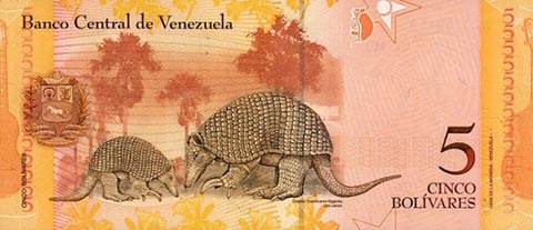 ВенесуэльБоливар Фуэрте. Купюра номиналом в 5 VEF, реверс.