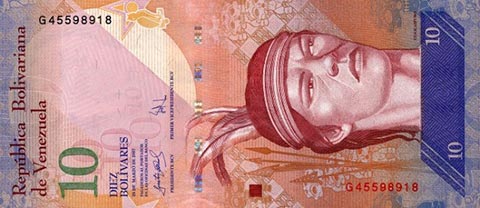 ВенесуэльБоливар Фуэрте. Купюра номиналом в 10 VEF, аверс.