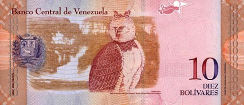 ВенесуэльБоливар Фуэрте. Купюра номиналом в 10 VEF, реверс.