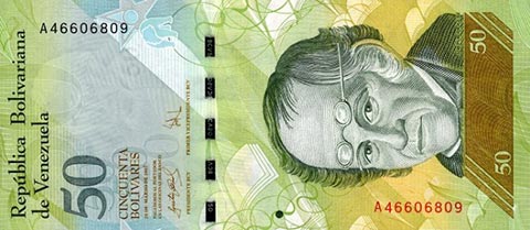 ВенесуэльБоливар Фуэрте. Купюра номиналом в 50 VEF, аверс.