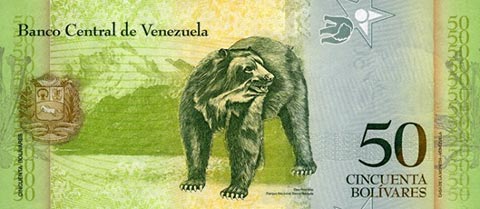 ВенесуэльБоливар Фуэрте. Купюра номиналом в 50 VEF, реверс.