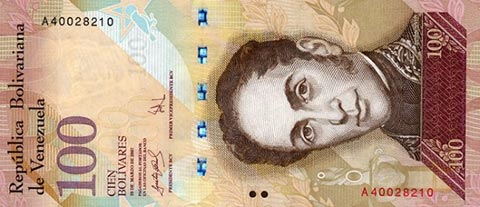 ВенесуэльБоливар Фуэрте. Купюра номиналом в 100 VEF, аверс.
