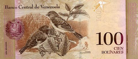 ВенесуэльБоливар Фуэрте. Купюра номиналом в 100 VEF, реверс.