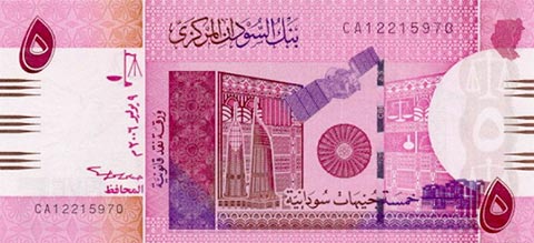 Суданский фунт. Купюра номиналом в 5 SDG, аверс.