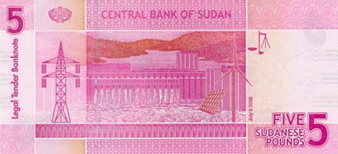 Суданский фунт. Купюра номиналом в 5 SDG, реверс.
