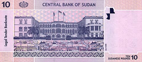 Суданский фунт. Купюра номиналом в 10 SDG, реверс.